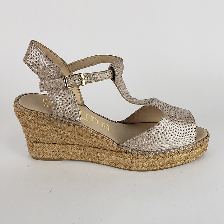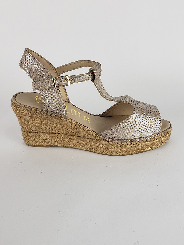 Open toe with gold buckle on the side